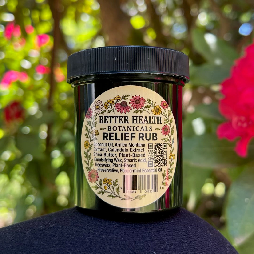 Relief Rub is a powerful, plant-based formula that people keep calling “life-changing.” Crafted with arnica, calendula, and peppermint essential oil, this fast-acting rub is designed to bring comfort where you need it most: shoulders, neck, back, knees, joints, and more.